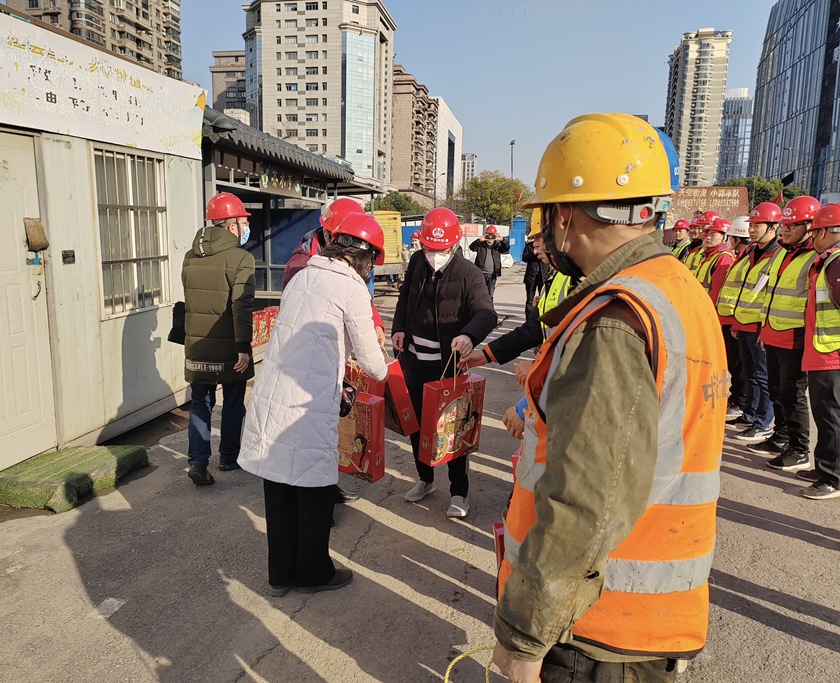 丁美君副书记一行先后来到01标1号井和管片场地,看望了奋战在施工一线的建设者,亲手将慰问品送到他们手中,向他们致以节日的问候和祝福。