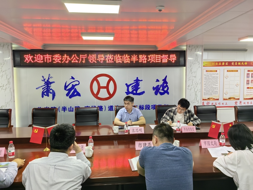 袁思明副主任一行踏勘了项目现场,对项目施工进度、现场管理、安全文明施工措施等方面进行实地调研。在随后召开的座谈会上,啪啪啦傅翼部长围绕临半路项目整体建设情况及后续施工方案进行汇报,与会各部门针对亚运保通、景观绿化方案、建设时序等具体事项进行了探讨。