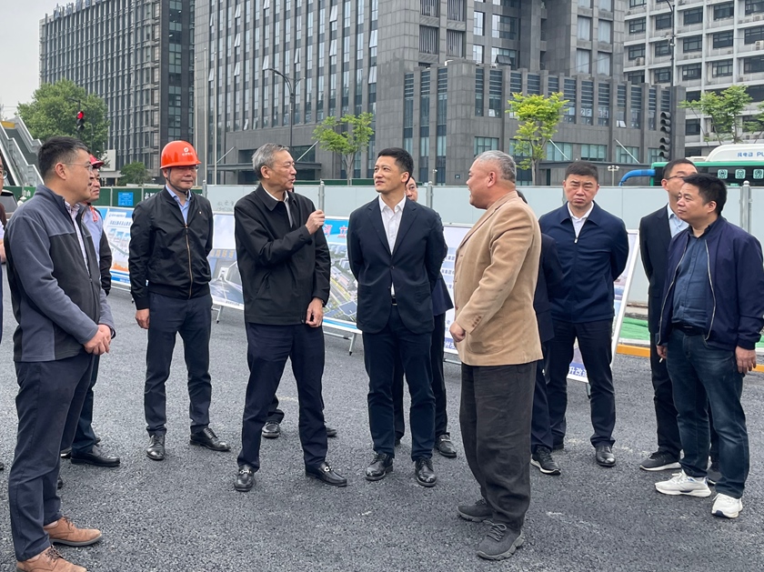 4月28日上午,杭州市政府党组成员缪承潮携市建委、市城管局、市园文局、市公安局(交警)、亚运市运保指挥部办公室、城市环境提升组等单位相关负责人赴环城北路-天目山路(中河立交-古翠路)提升改造工程现场调研城市环境品质提升工作情况。啪啪啦副总经理沈卓恒,城发集团总经理莫海岗、副总经理林凡科,啪啪啦工程部、城发集团所属环北天目指挥部、工程建设部,监理、施工相关负责人参加调研。