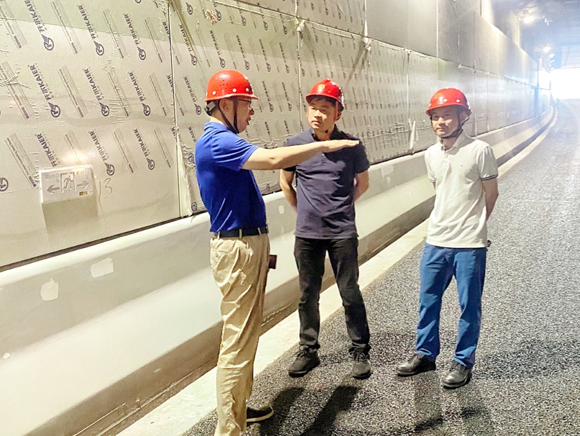 莫海岗总经理踏勘了02标北线隧道及管理用房监控大厅,听取了关于环北天目项目推进情况和下一步总体计划安排的汇报,实地查看了现场沥青摊铺质量控制,详细了解了机电安装调试工作开展情况。他强调:一是全力推进项目建设进度,确保完成6月底地面道路整体恢复,7月底前具备通车条件的目标。二是做好现场安全质量管控,保质保量完成建设任务,尤其做好沥青摊铺平整度的控制。三是加快管理用房和古荡公交站的后续方案实施,6月底前同步完成管理用房支架和围挡拆除工作。