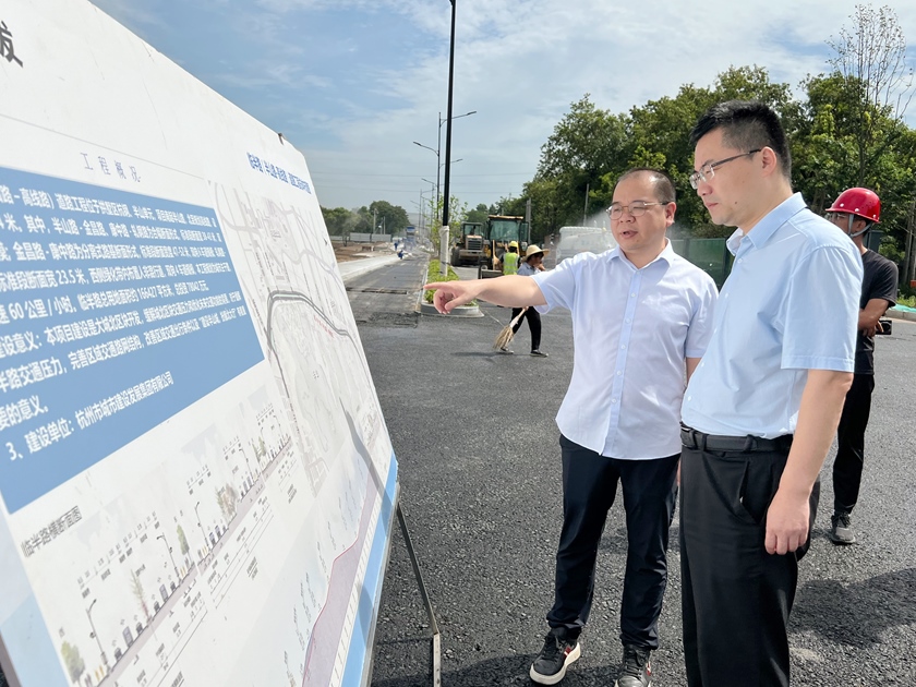 在环北天目提升改造工程现场,陆梨华书记听取了关于管理用房建设情况、路面沥青摊铺进度、消防设备调试、存在问题和后续、计划安排的详细汇报,询问了亚运专用道建设情况和沿线绿化恢复情况。