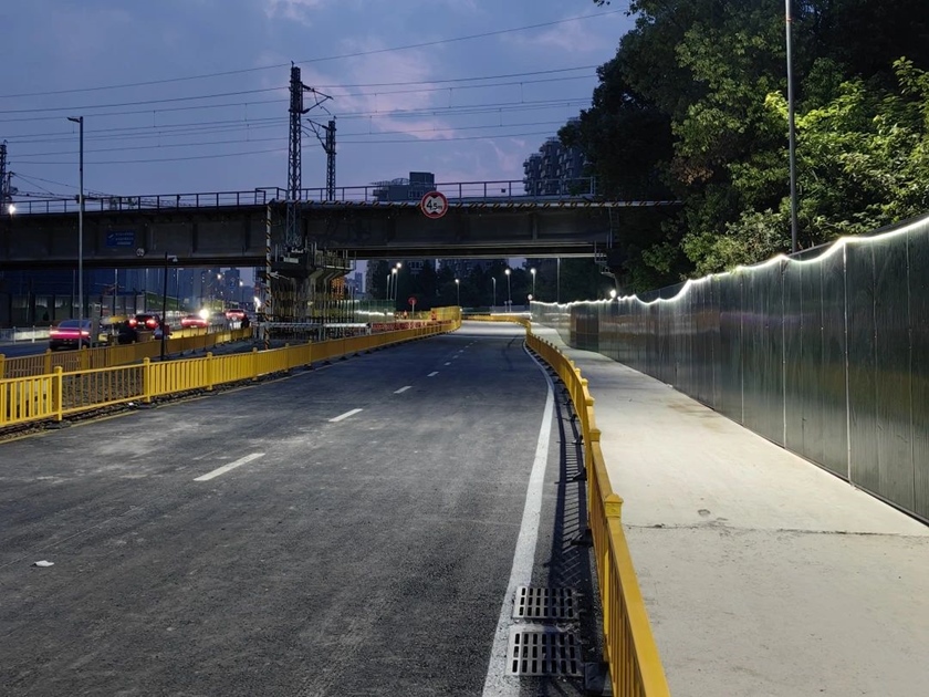 自崇杭街项目开工以来,集团统筹谋划,多方协调,先后攻克了管线迁改复杂、涉宣杭铁路保护施工等难题。崇杭街现状交通流量大,需确保双向四车道通行,交改难度极大。对此,指挥部积极与临平、拱墅区交警部门沟通,优化交改方案。在通行道路两边安装防护栏杆及施工围挡,并落实专人指挥,确保交改期间行人及社会车辆安全顺利通行。