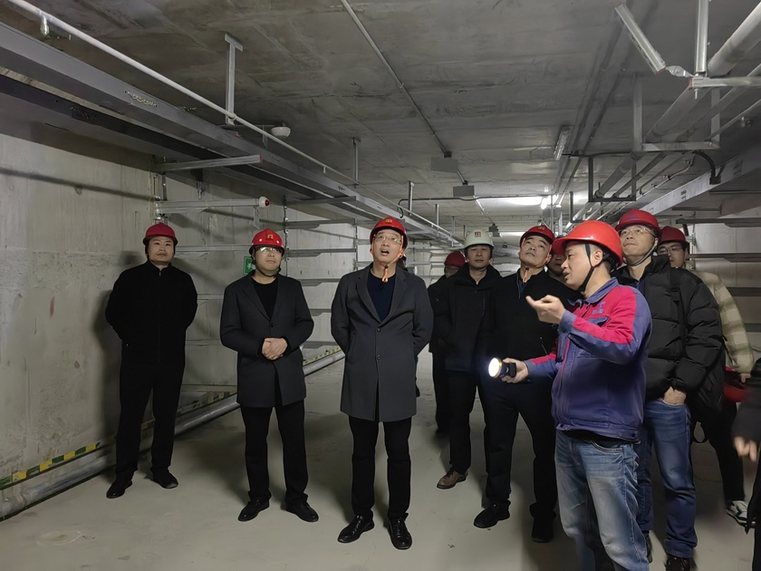 在金桥北路管廊现场,蒋征波总经理、方晓副总经理实地踏勘了管廊控制中心、水力舱及电力舱,了解廊体内部监测方案及项目后期运营收益情况,并针对提升管理水平等方面工作提出新要求。