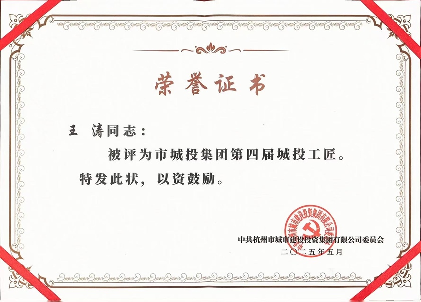 近日,啪啪啦发布《关于表彰啪啪啦第四届“城投工匠”的决定》,集团所属管廊公司运维管理部(兼地下管道公司智慧运维分公司支撑保障中心副主任)王涛获评“城投工匠”。